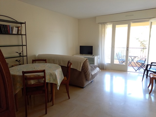 A nice, cosy and self catering apartment on the ground floor of a villa, with a big garden and swimming-pool in the residential and elegant area of the town. Two bedrooms, one for the parents and the second for the children with a bunk bed and a folding sofa. Suitable for 3 kids. Bathroom and laundry facilities. Outdoor terrace for your evening meals. Next door, large room for access to French TV programs for the kids in agreement with the hostess. The whole family has unlimited access to the swimming pool and WiFi access. About 2 km from school. A car would be needed.